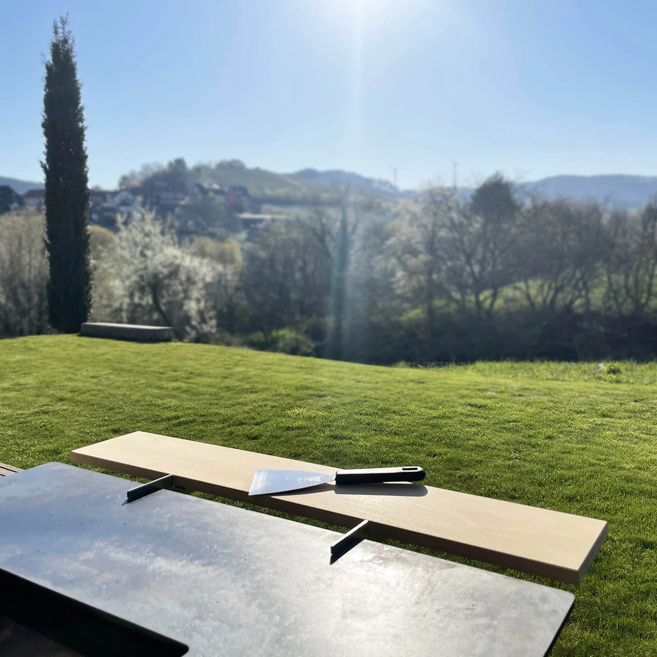 BlackBulls Ablagebrett ist das perfekte Zubehör für Ihren BigQube. Es besteht aus dem wetterfesten Garapa-Holz, welches sich unter Anderem durch eine besondere Langlebigkeit auszeichnet. Das Brett ist mit einer Länge von 80 cm und einer Breite von 14 cm eine perfekte Möglichkeit, um mehr Ablageflächen zu schaffen. Mit den Edelstahlhalterungen kann es leicht an die Grillplatte angesteckt werden. Darüber hinaus hat man mit dem Ablagebrett auch einen Schutz vor der heißen Grillplatte.