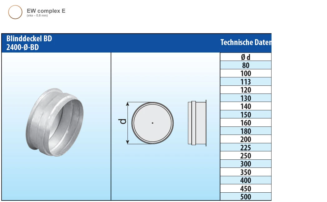 Blinddeckel / einwandig / eka complex E