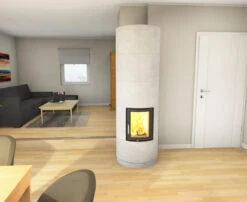 In etwa 20 % der Wärme werden durch die Scheibentür direkt an die Umgebung abgegeben, sodass eine schnelle Wärmeentwicklung entsteht. Die restlichen 80 % finden den Weg in die Speichermasse. Hier geht die Wärme nicht verloren, sondern wird über Stunden hinweg als Strahlungswärme in den Raum geworfen. Decken, Wände, Kommoden und sonstiges wärmen sich dadurch auf und schaffen ein wohltuendes, wärmendes Raumklima. Der produzierte Rauch kann über einen Rauchrohrabgang entfliehen. Dieser lässt sich wahlweise oberhalb oder hinter dem Speicherofen anbringen.