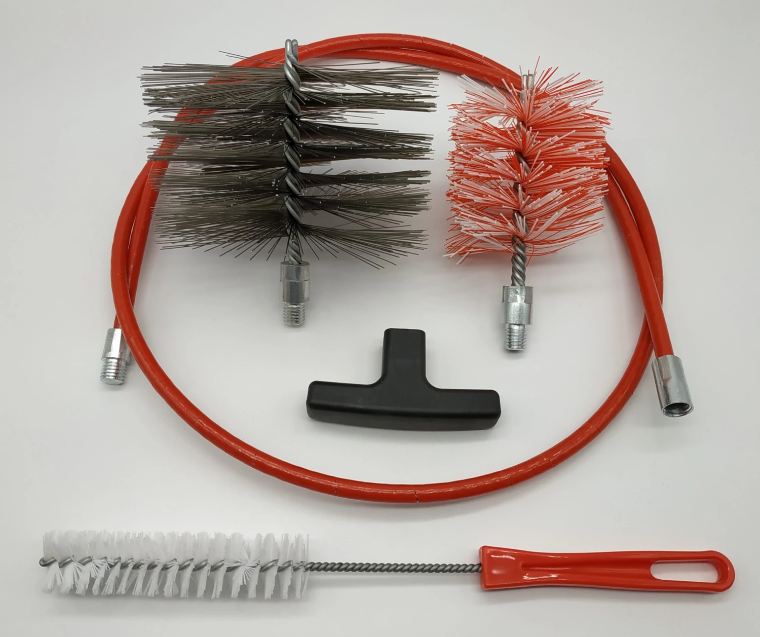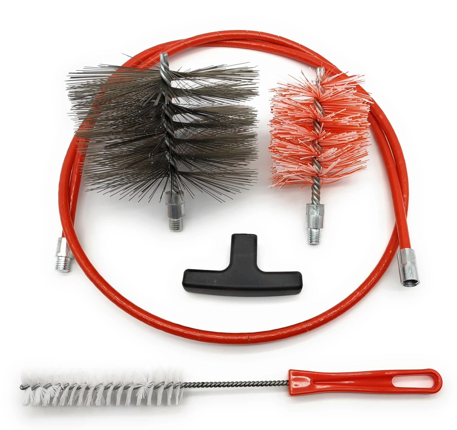 Das Reinigungsset der Marke Danskfyre ist sowohl fĂĽr Kamin- als auch Pelletöfen geeignet. In Deutschland haben annähernd alle Kaminöfen Rauchrohre mit einem Durchmesser von 150 mm – Pelletöfen hingegen lediglich 80 mm. Die im Set enthaltenen BĂĽrsten wurden ausgiebig an den jeweiligen Ofenarten getestet und dahingehend optimiert. Die KaminofenbĂĽrste besteht aus Stahldraht (geeignet fĂĽr stärkere RuĂźablagerung) und wurde mit einem 140 mm Durchmesser produziert. Da Pelletöfen im Vergleich viel weniger ruĂźen aufgrund des Brennmaterials, wird hier eine feinere 80 mm Nylon BĂĽrsten benötigt, um den Lack der Rohre nicht zu beschädigen.