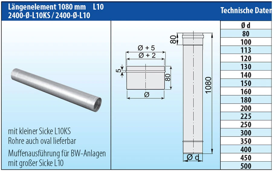 1x Längenelement 1080 mm mit Ablassschlaufe