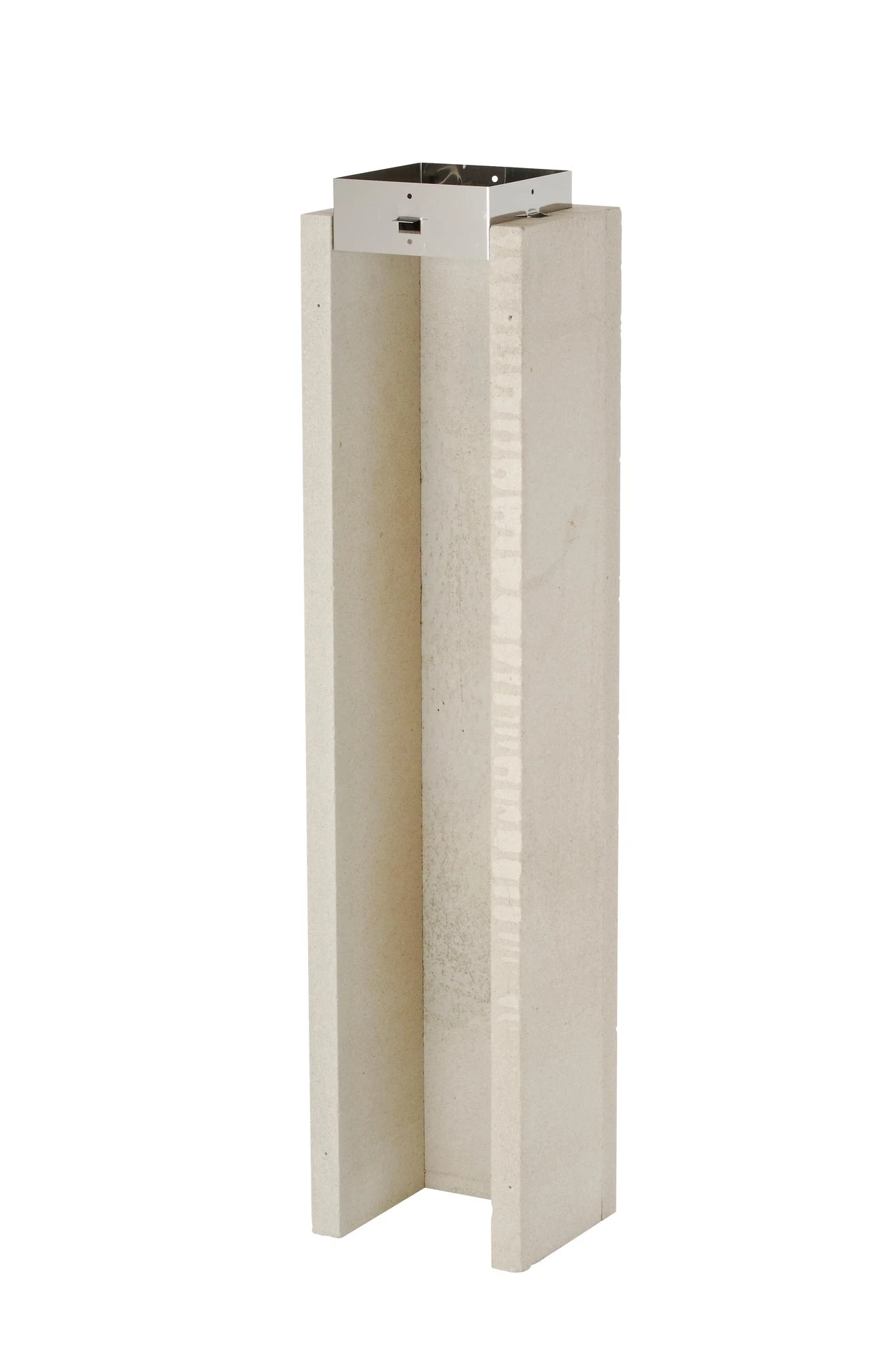 einzĂĽgiger F90- Leichtbauschornstein, AuĂźenmaĂź 250 x 250 mm aus Silikat- Brandschutzplatten mit abnehmbaren Vorderplatten und einwandigen V4A-Edelstahleinsatz in verschiedenen Querschnitten (siehe oben) inklusive aller Formteile (siehe Lieferumfang), Montageanleitung, Querschnittsberechnung, CE Zertifizierung und Typenschild.