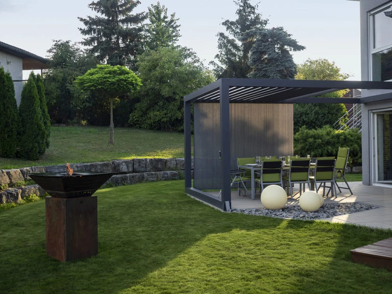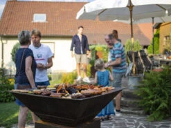 Neben dem Grillen ĂŒberzeugt der BigQube M Wood als Feuerschale und schafft eine tolles Ambiente.
