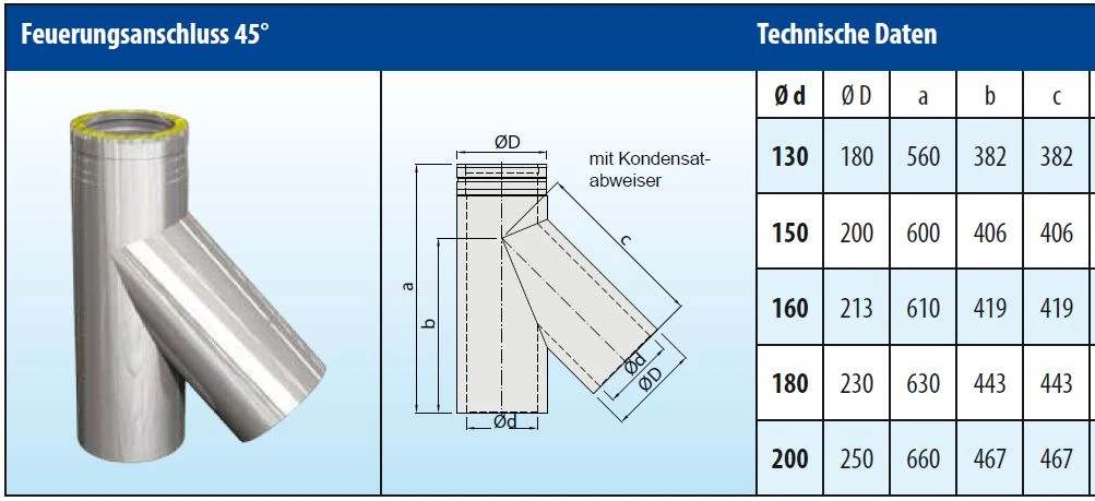 Sie setzen auf Design und edle Verarbeitung? Dann kaufen Sie das Produkt „Feuerungsanschluss 45° Design Edelstahl doppelwandig – eka cosmos D 25“ direkt online im Shop von CAFIRO.