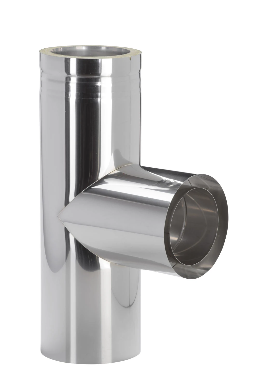 Bei Regelfeuerstätten für Holz, feste Brennstoffe, Pellets und weitere ist das doppelwandige Schornstein-Formteil aus erstklassigem V4A und V2A Edelstahl (Materialnummer: 1,4404 oder 1,4301) genau das richtige Schornsteinsystem für einen Neubau oder einen Außenschornstein.