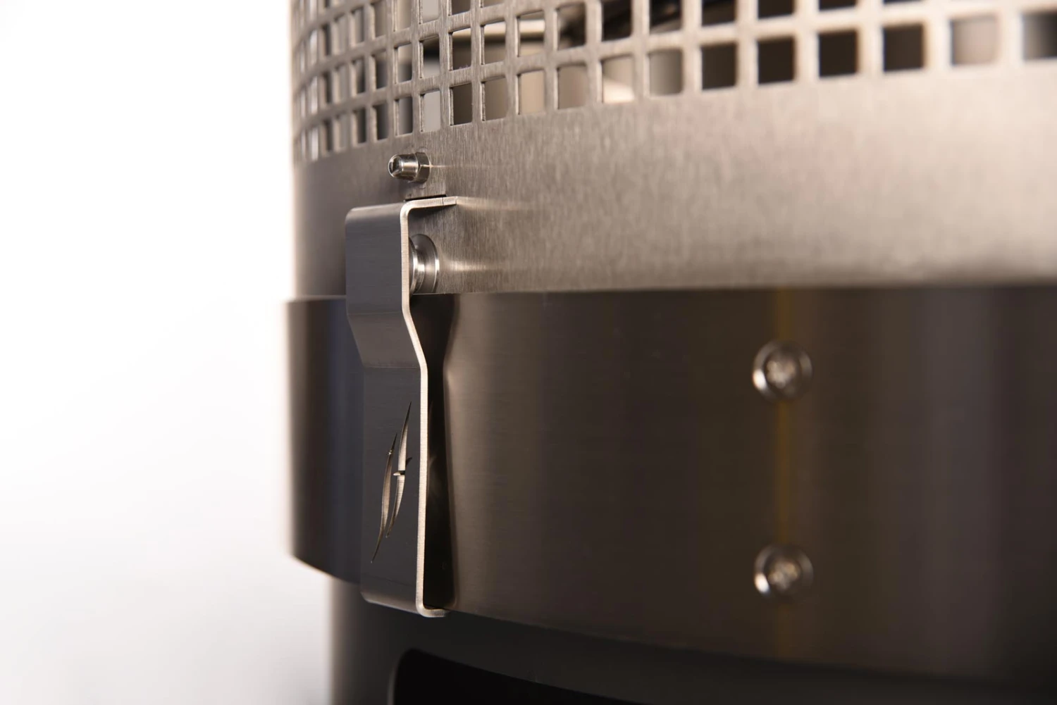Eine Besonderheit bildet die 360° umlaufende FunkenschutztĂŒr. Wird der Funkenschutz nicht benötigt, lĂ€sst er sich leicht in den hinteren Brennraum verschieben. Die aus Edelstahl gefertigte Konstruktion verfĂŒgt ĂŒber vier Rollen und kann problemlos verschoben werden. Die TĂŒr ist mit vier Kugellagern ausgestattet und ermöglicht Ihnen ein komfortables und leichtgĂ€ngiges Ăffnen und SchlieĂen.