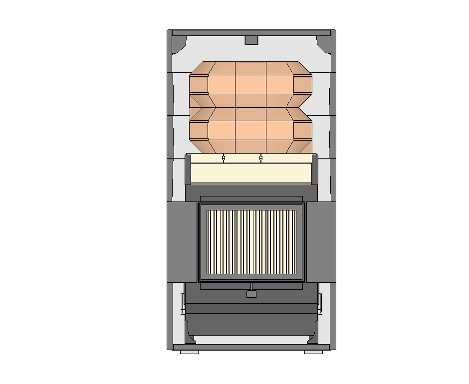 Der hier abgezeichnete Grundofen verfĂŒgt ĂŒber ein praktisches Bedienelement zur Regulierung der Luftzufuhr. Mithilfe einer optionalen Verbrennungsluftautomatisation (EAS) kann diese allerdings noch einfacher geregelt werden. So entsteht ein punktgenauer Abbrand mit einer maximalen Energieeffizienz.