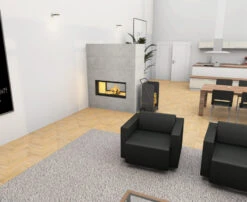Durch eine geschickte Positionierung im Aufstellraum kann die Kaminanlage stilvoll als Raumtrenner eingesetzt werden. Die Oberfläche des Architektur-Kamins kann in ihrer natĂĽrlichen Betonoptik belassen werden, oder individuell gestaltet werden. Mit Putz, Farbe oder GroĂźkeramikteilen stehen Ihnen hier allerlei Varianten zur VerfĂĽgung.Â
