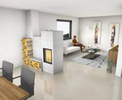 Ein solcher Kachelofen hat freilich nichts im Eck verloren. Besitzer eines Speicherofens BSO 03 errichten ihre Ofenanlage als frei stehendes Objekt oder als Raumteiler. Auch eine Integration in die Wand ist denkbar und setzt den Tunnelofen schĂśn in Szene. Bei dieser Variante kĂśnnen gleich zwei Wohnräume mit dem faszinierenden Flammenspiel bereichert werden.Â