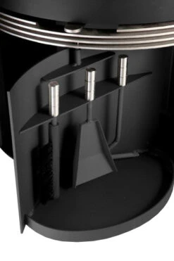 Passend zur 360°-DrehtĂĽr zur Verdeckung des offenen Holzfachs bei den Modellen TT20, TT20S, TT20R und TT20RS von TermaTech gibt es ein Kaminbesteck, dessen Aufhängung bereits in die Innenseite der TĂĽr eingearbeitet ist.Â