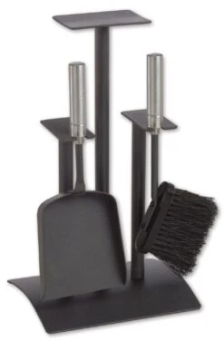 Anthrazit beschichtetes Kaminbesteck mit Halterung