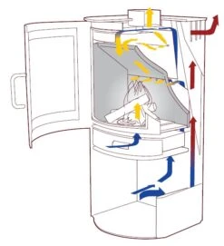 - extrem hoher Wirkungsgrad durch Zweikammersystem zur Vorwärmung der Verbrennungsluft