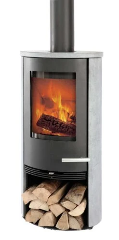 Der Zuzug von Primär- und Sekundärluft ist zudem durch eine Einhebel-Bedienung individuell steuerbar. Unterhalb der Tür zum Feuerraum befindet sich ein offenes Holzlagerfach.