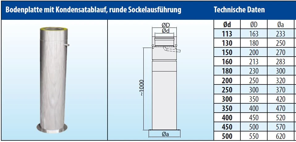 Konsolplatte mit Ablauf Edelstahl doppelwandig Sockel rund – eka cosmos D 25