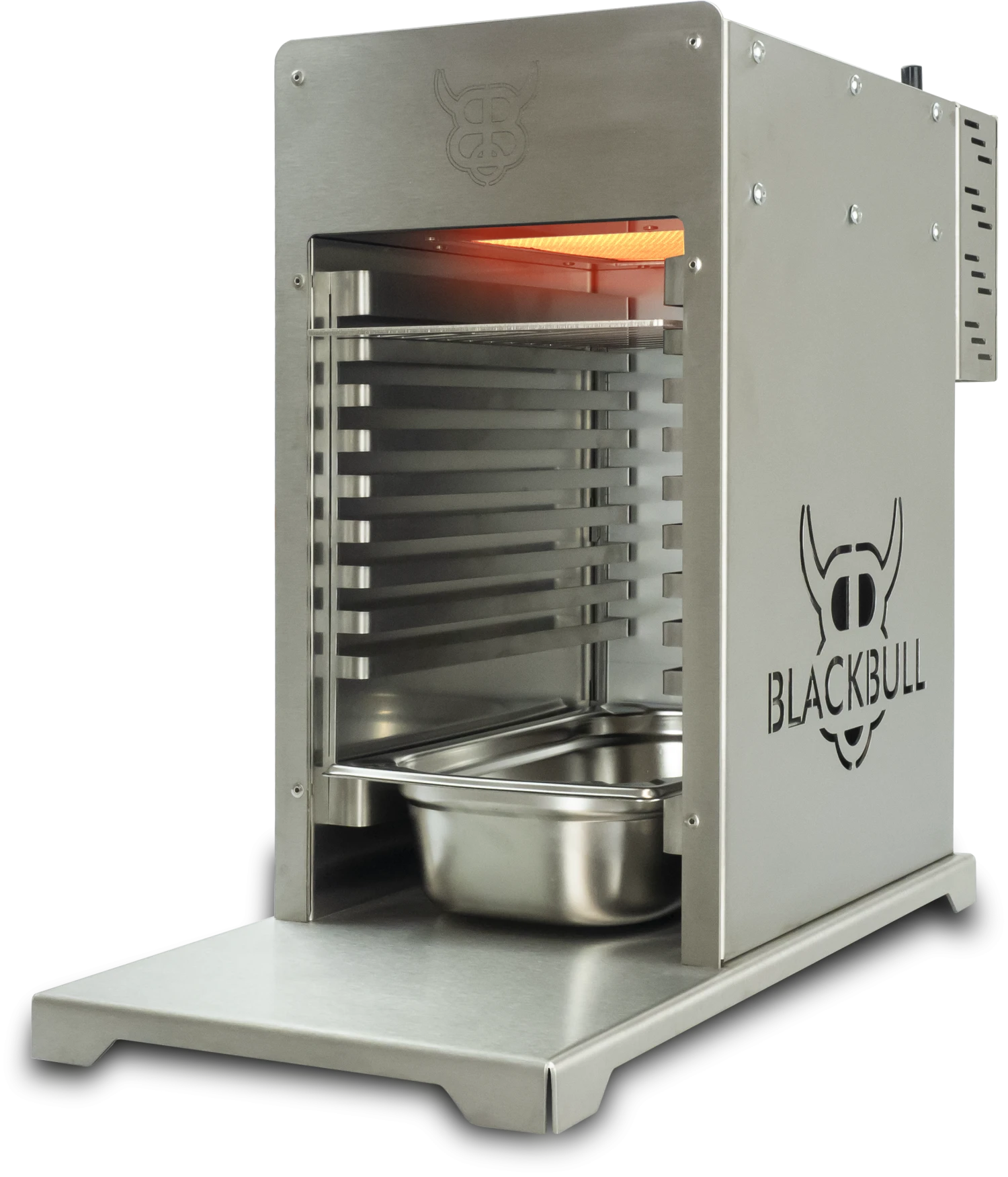 Der Oberhitzegasgrill „HellBoy“ von BLACKBULL ist ein absolutes MUSS fĂĽr alle Fleischfans. Durch die extreme Hitze des leistungsstarken Keramikbrenners (2,2-3,2 kW) ist Ihr perfektes Steak innerhalb von wenigen Minuten auĂźen knusprig karamellisiert und innen zart und saftig.Â