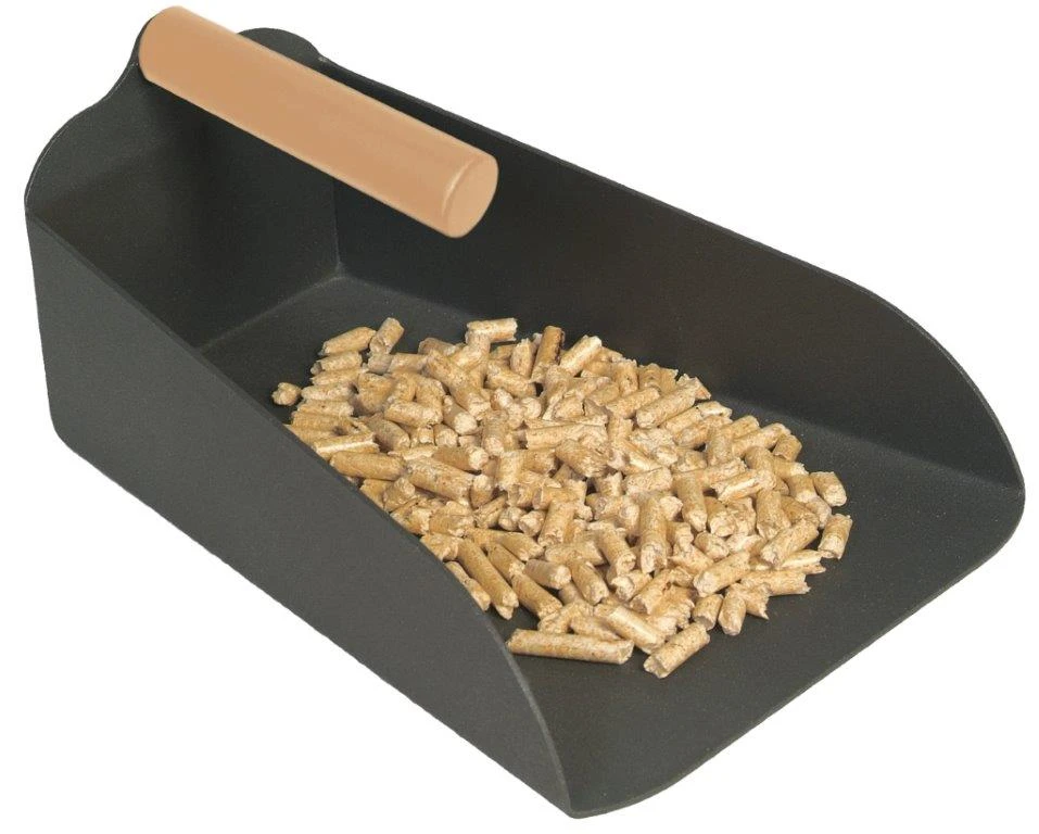 StÀhlerne Pelletschaufel aus Stahl mit Buchengriff