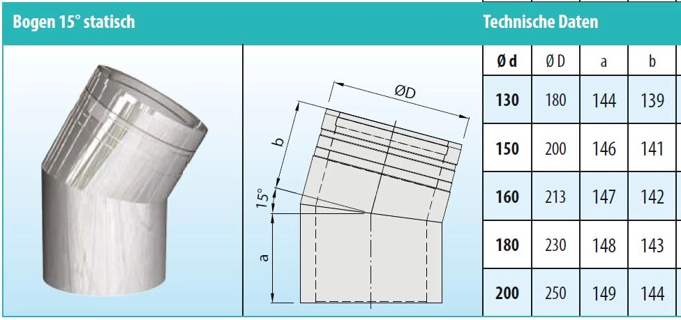 Wenn Sie Wert auf Qualität und hochwertige Verarbeitung legen, bestellen Sie unser Produkt „Schornstein Winkel 15° statisch doppelwandig – eka cosmos D 25“ bei uns im Shop.