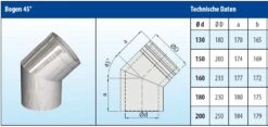 Entscheiden Sie sich fĂĽr Qualität und kaufen Sie das Produkt „Schornstein Winkel 45° doppelwandig – eka cosmos D 25“ in unserem Shop.
