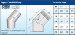 Wenn Sie Wert auf Qualität und hochwertige Verarbeitung legen, bestellen Sie unser Produkt „Schornstein Winkel 45° mit Prüföffnung doppelwandig – eka cosmos D 25“ bei uns im Shop.