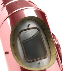 Doppelwandiger Edelstahlbogen mit Prüföffnung mit galvanisch verkupferter Außenschale aus hochwertigen V4A Edelstahl, wahlweise in den Querschnitten 113 – 400 mm in der Materialstärke: Innenschale 1 mm, Außenschale 0,6 mm in 50 mm Wärmedämmung zur Schrägführung der Schornsteinanlage.