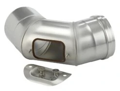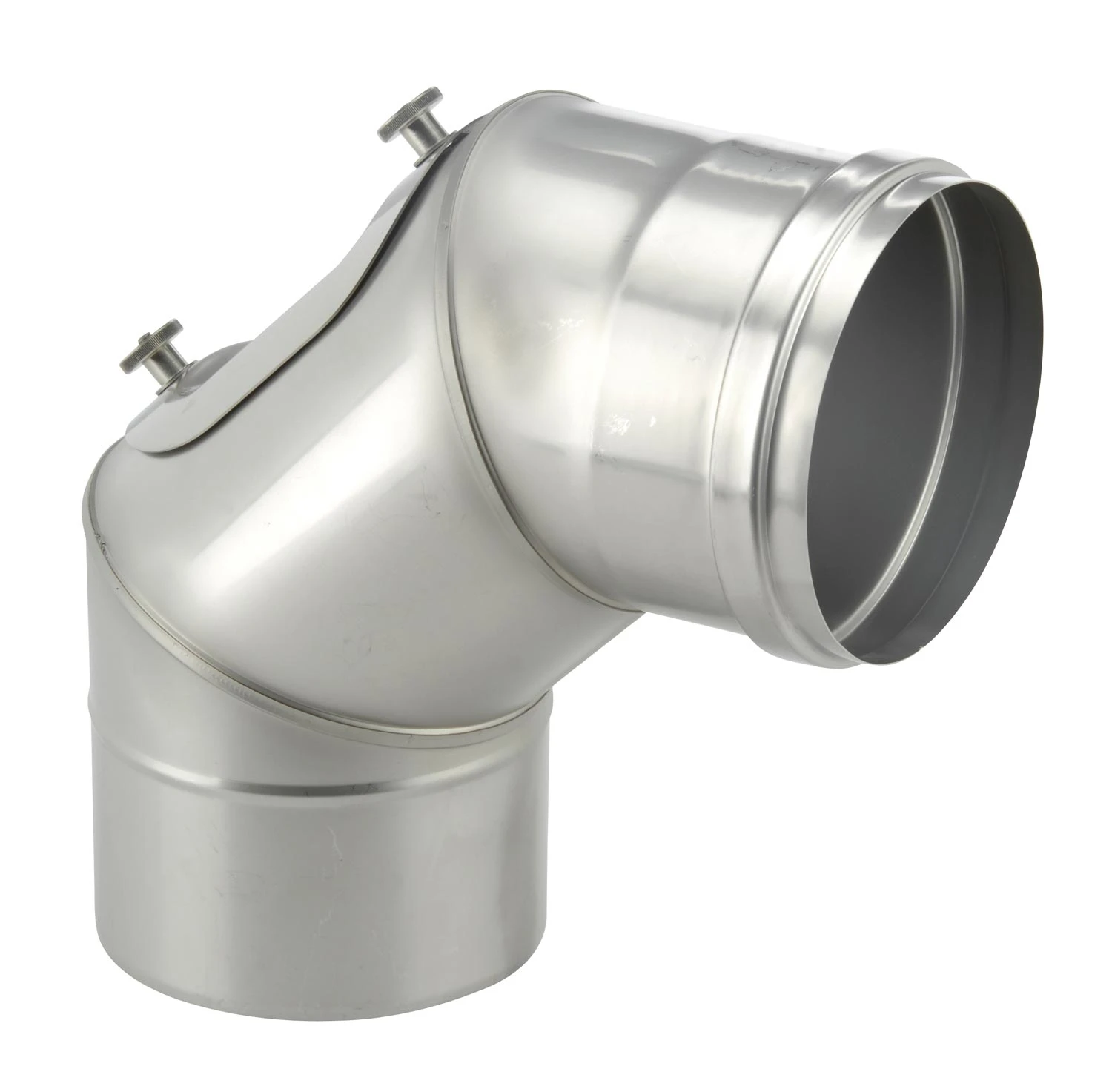 Einwandiger Schornstein Winkel in wählbaren Querschnitten 80 – 400 mm aus hochwertigen V4A Edelstahl in der Materialstärke: 0,6 mm (1,0 mm auf Anfrage) zum Einbau in Schornstein-Verbindungsleitungen.