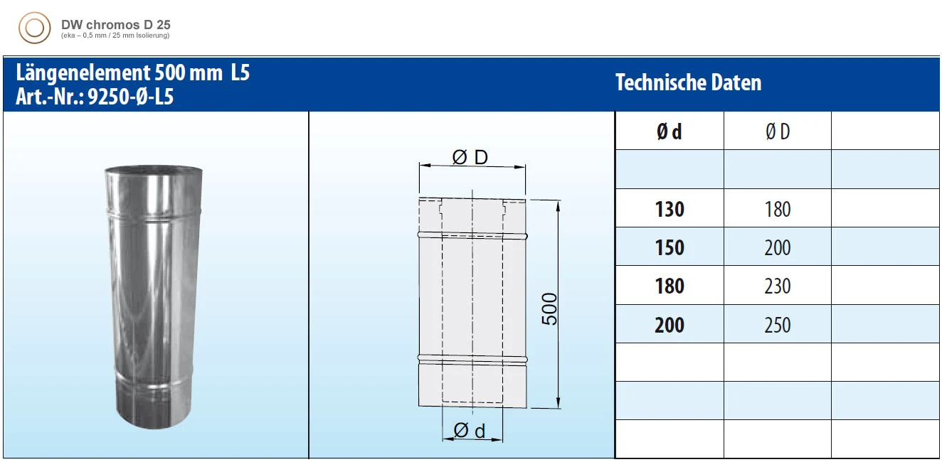Schornsteinrohr Edelstahl 500 mm / doppelwandig / eka chromos D 25
