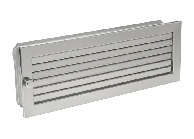 LĂŒftungsgitter aus Edelstahl fĂŒr Ihren Kamin zur Regulierung der KonvektionswĂ€rme; einfache Montage durch praktischen Einbaurahmen.